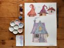 – dipingere singoli tetti, legati a temi differenti, come un cappello-tetto da strega, un cappello-tetto da elfo e un cappello-tetto da gnomo, ragionando sullo stile e su come crearsi una piccola “libreria” di riferimenti visivi a cui attingere per creare le illustrazioni;