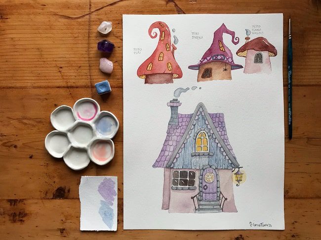 In questo corso imparerai ad illustrare case fiabesche con la tecnica dell’acquerello.