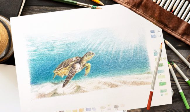 Iscriviti al corso e inizia subito ad utilizzare le matite colorate per disegnare una splendida tartaruga!