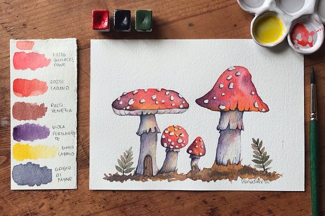In questo corso imparerai a dipingere foglie e funghi autunnali illustrati e fiabeschi, con la tecnica dell’acquerello.